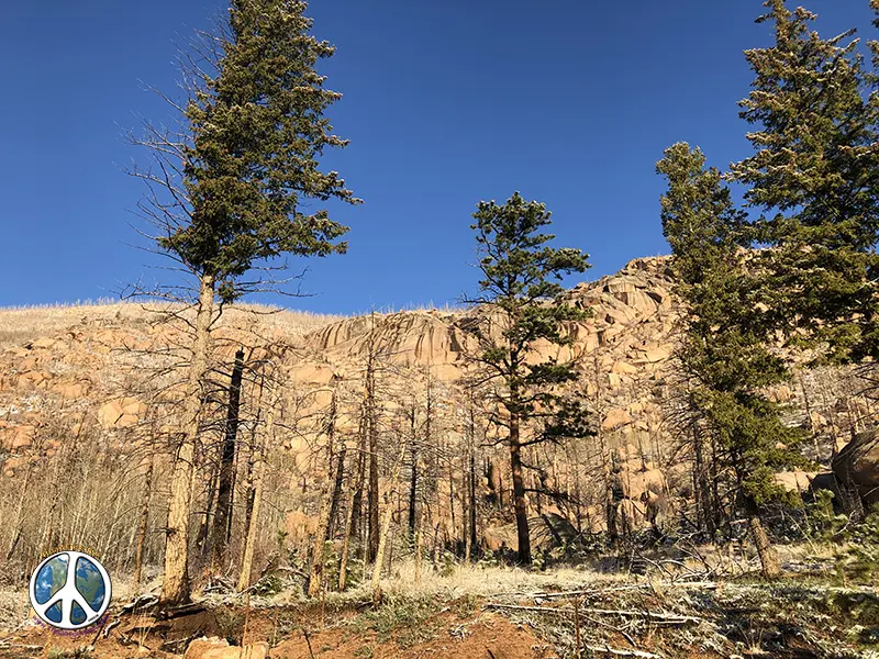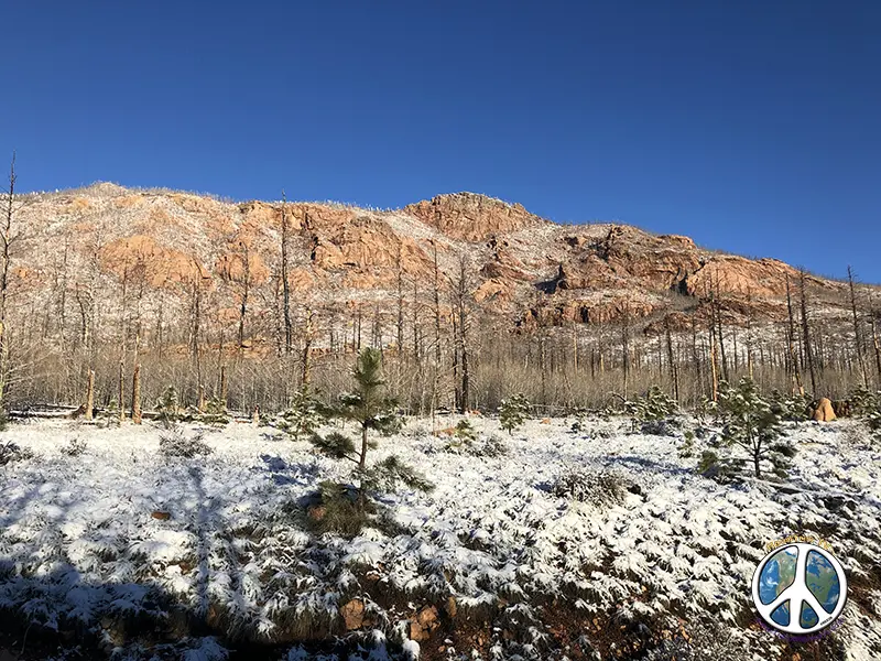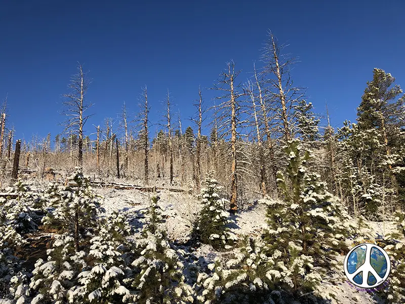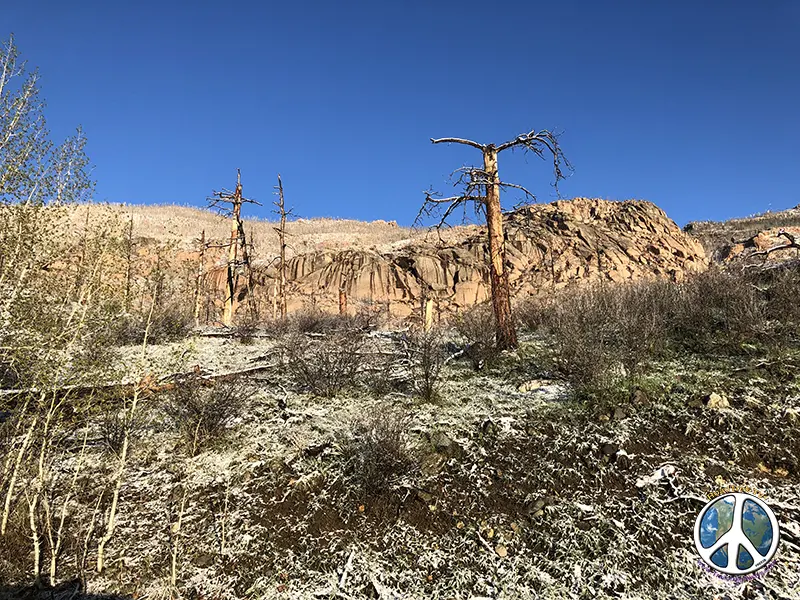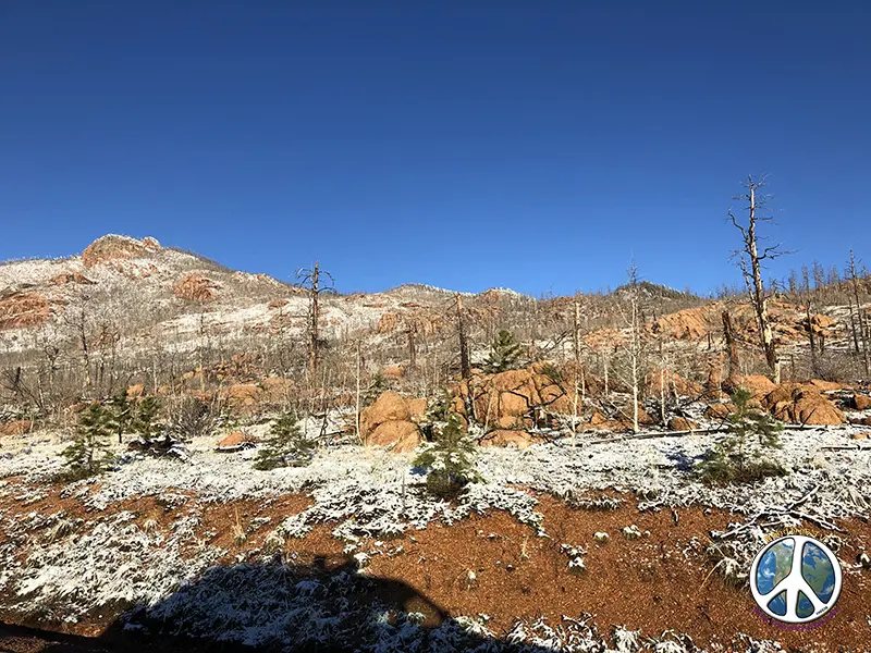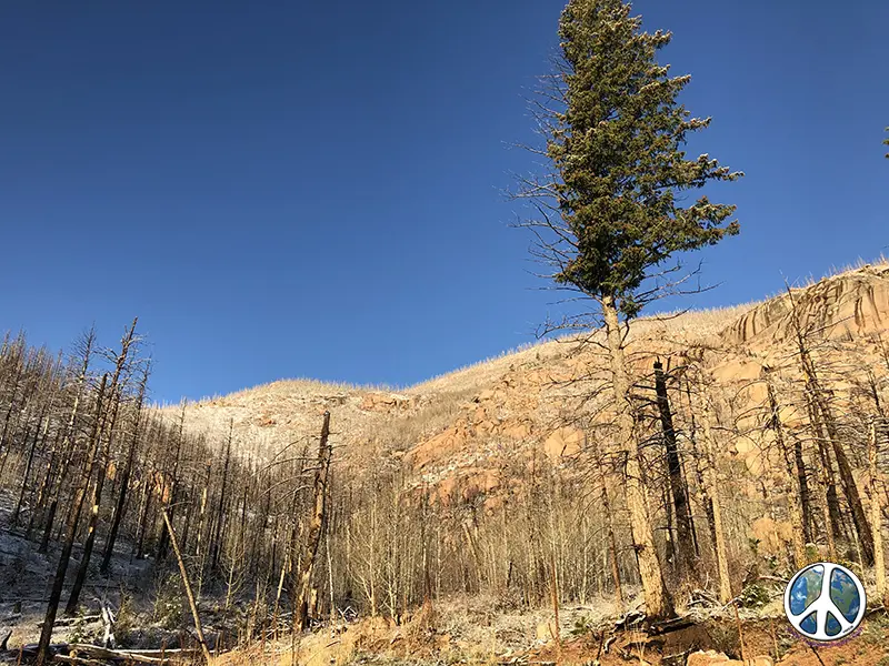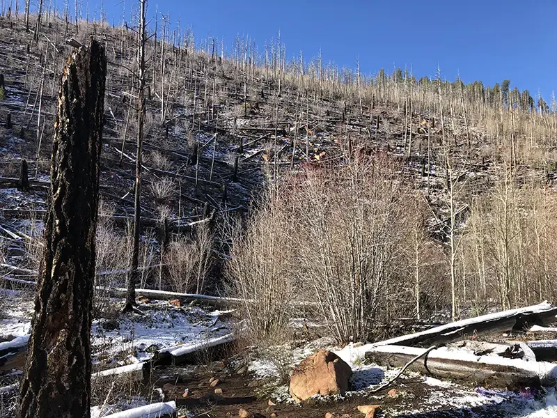 - Starkness caused by fire along the boundary of Lost Creek Wilderness.