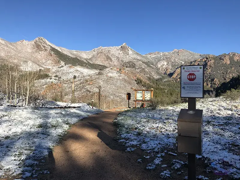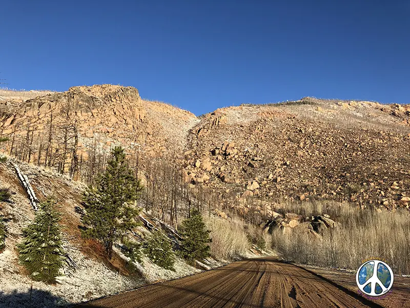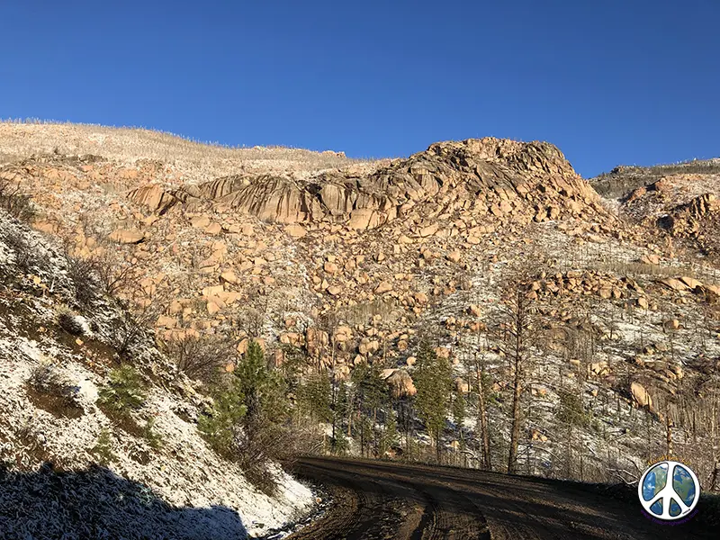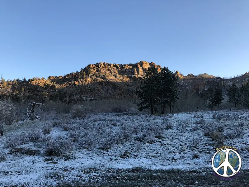 Alright, let’s talk logistics before you end up in Kansas. The Goose Creek Trailhead is your starting point, about 2 hours southwest of Denver or 1.5 hours from Colorado Springs. From Denver, hop on US-285 south toward Fairplay, then veer right onto County Road 211 (also known as Lost Park Road). It’s a bumpy 20-mile dirt road from there—think washboard vibes that rattle your teeth and test your vehicle’s suspension. Four-wheel drive isn’t mandatory, but if your sedan bottoms out, don’t say I didn’t warn you. Coming from Colorado Springs or Woodland Park head west on 24 to Terryall Road, just out side of Lake George, turn right to forest service road and head to Goose Creek Trailhead. A beautiful drive, Drives at dawn to me are some of the best. A thermos of press pot coffee, homemade breakfast burrito. With 3 inches of fresh snow over night adds so much to the depth of beauty on this morning. Heading in from the Lake George, Colorado side heading to Lost Creek Wilderness. It’s pretty cold at 5 am when I left Woodland Park, so I am wearing a 1/4 zip outer layer to strip off latter.