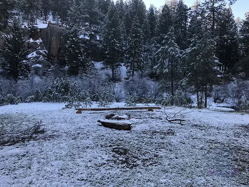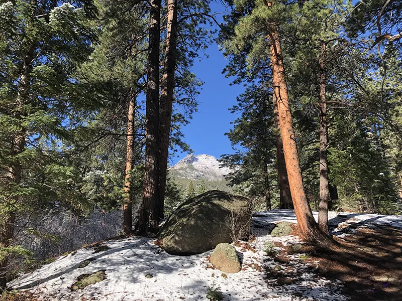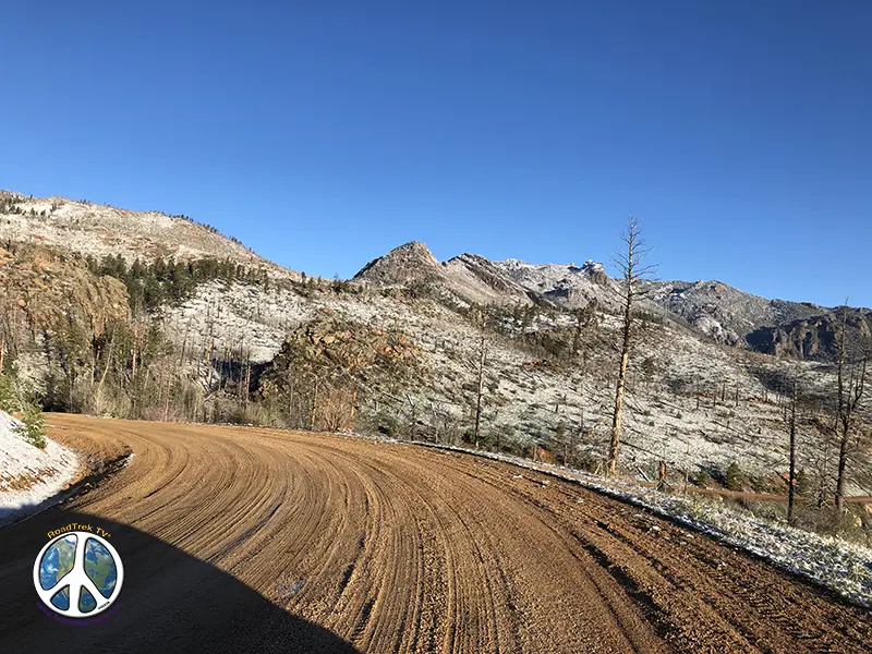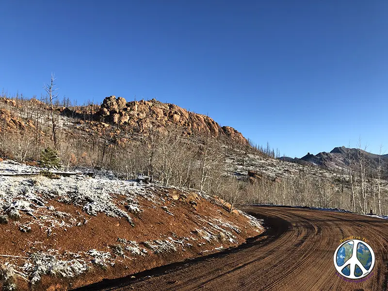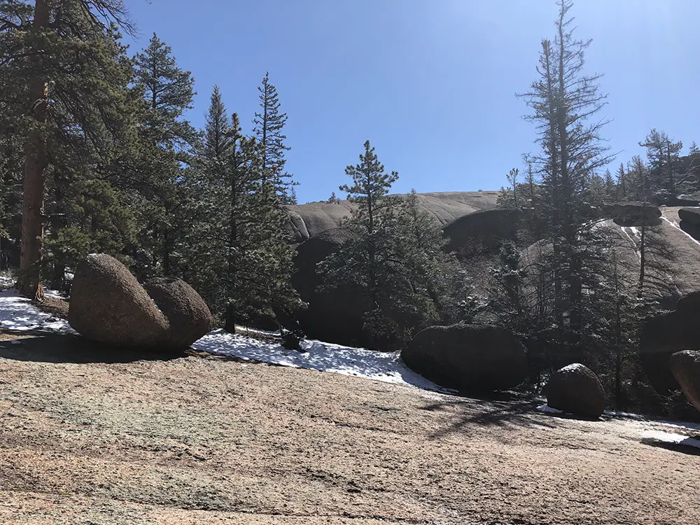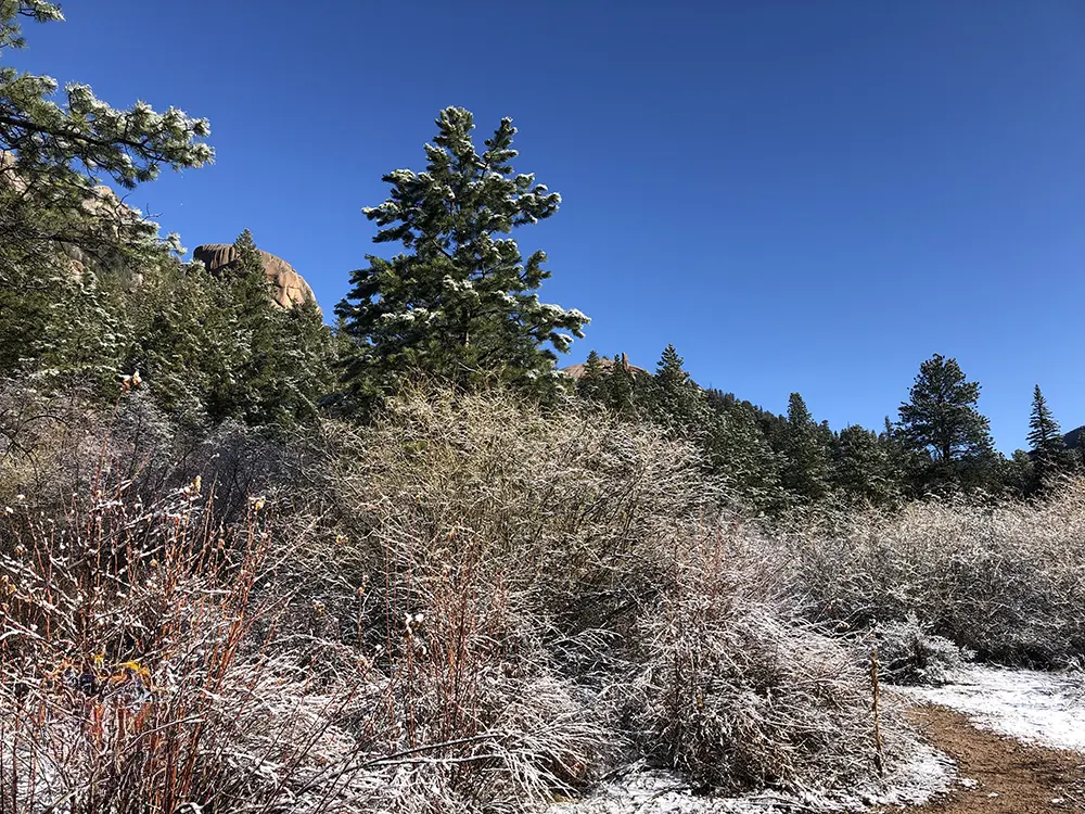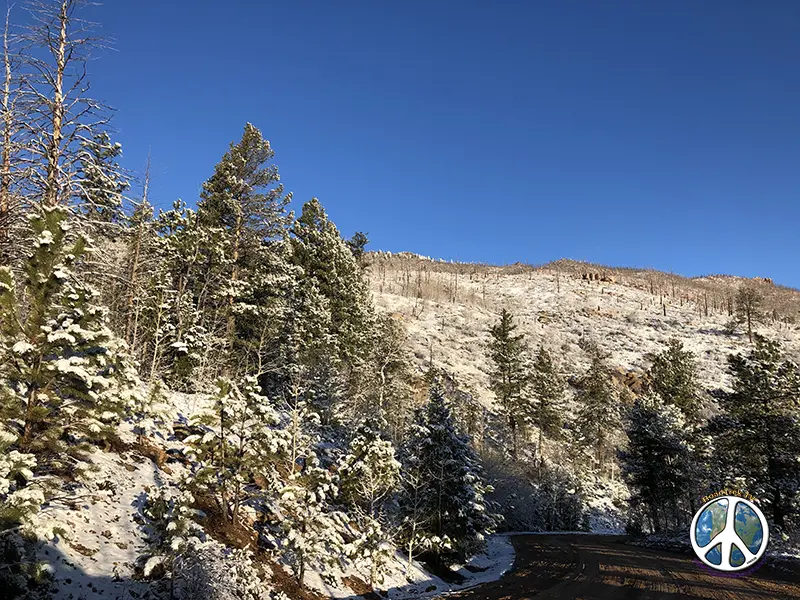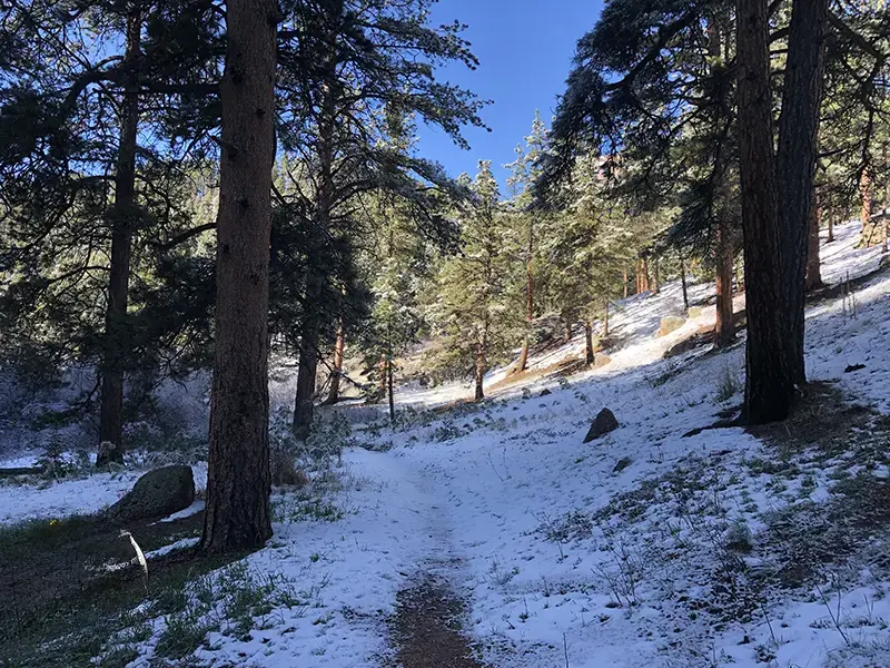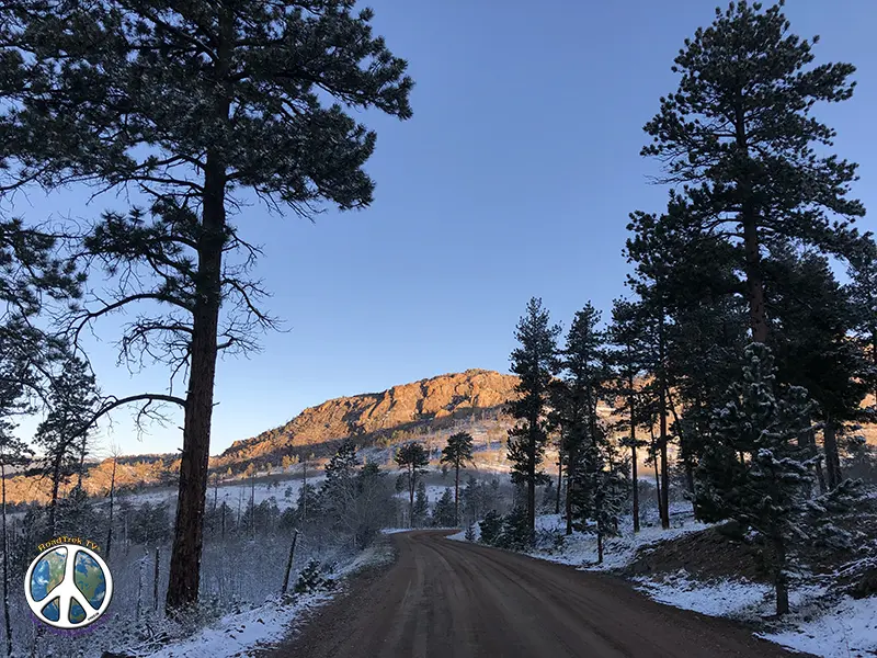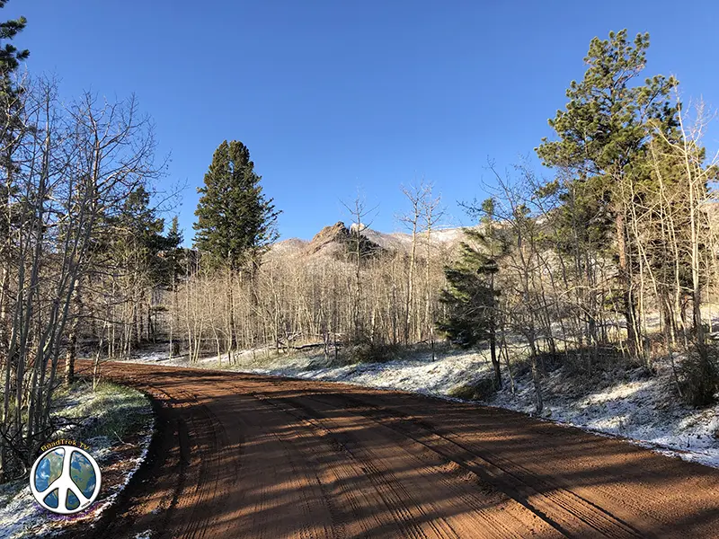 - Winding through Pikes National Forest on a spring morning of light and snow.