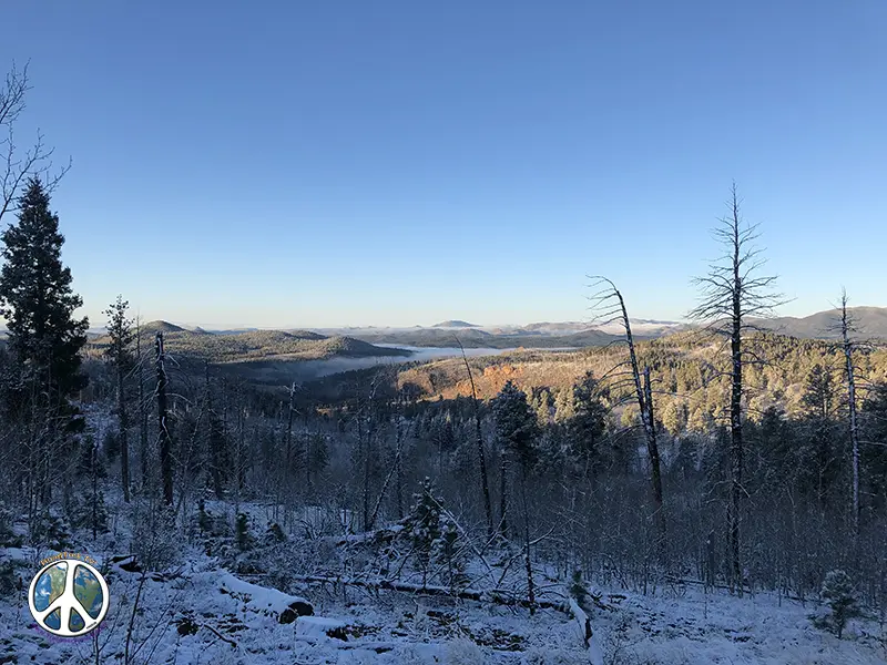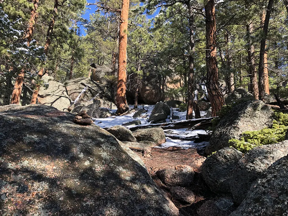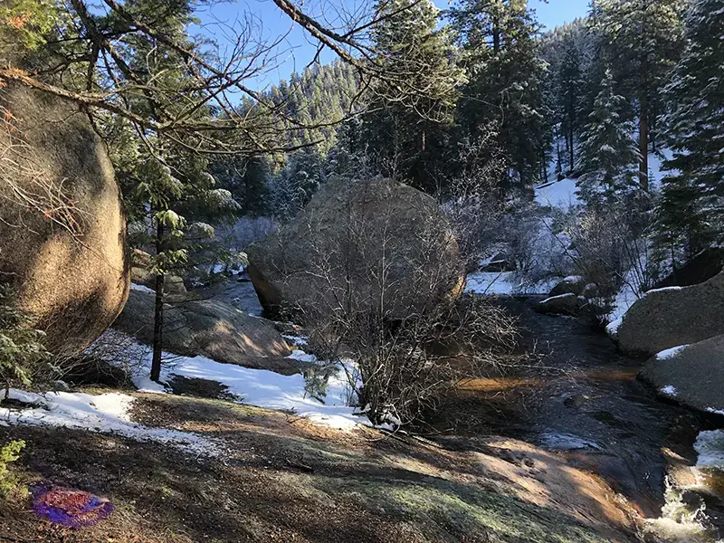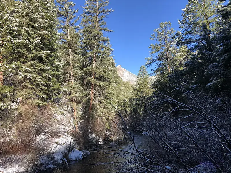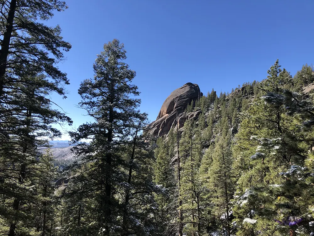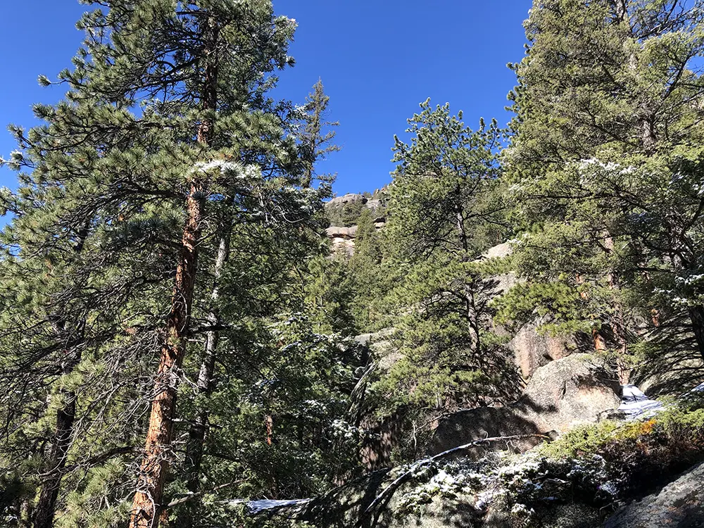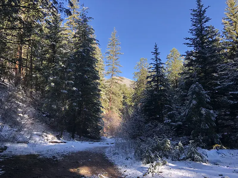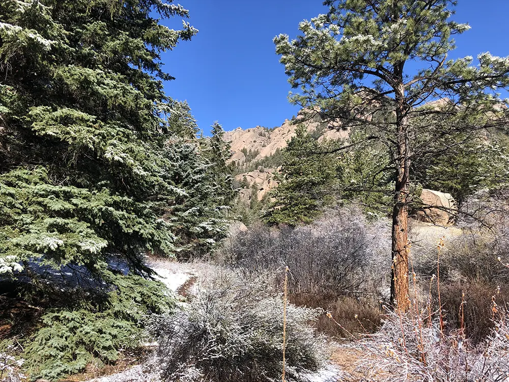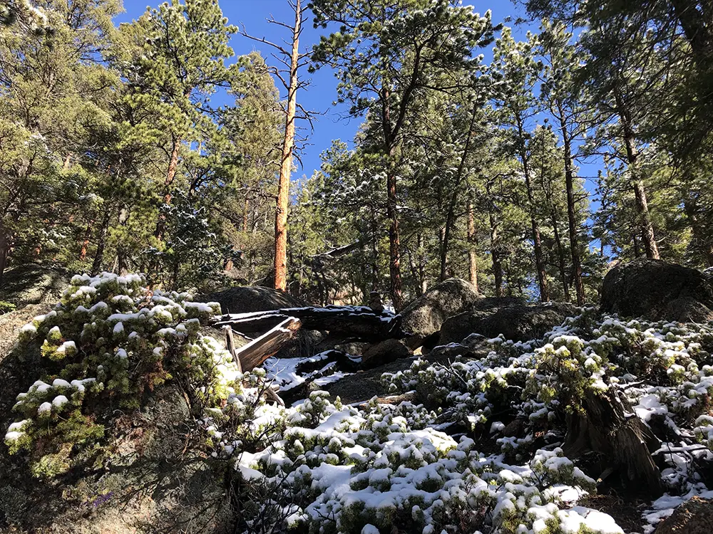 - Winding through Pikes National Forest on a spring morning of light and snow.