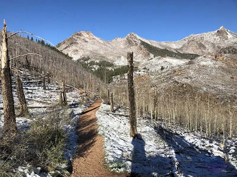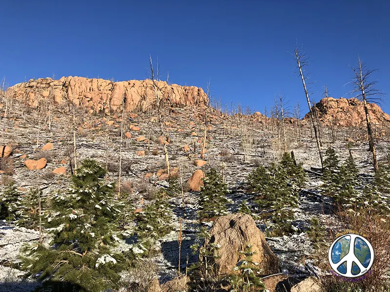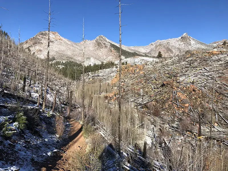 - This section of wilderness is burnt from a forest fire for the next quarter mile.