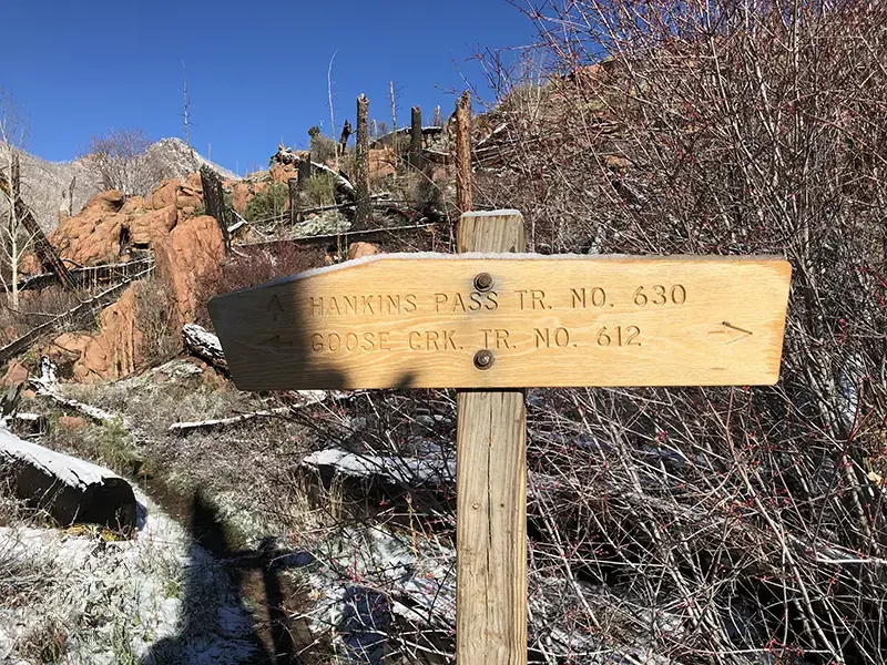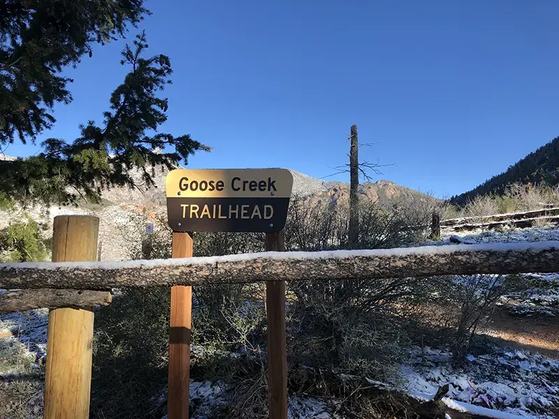 - Sign on Forest Service Road for turn to Goose Creek Trailhead.
