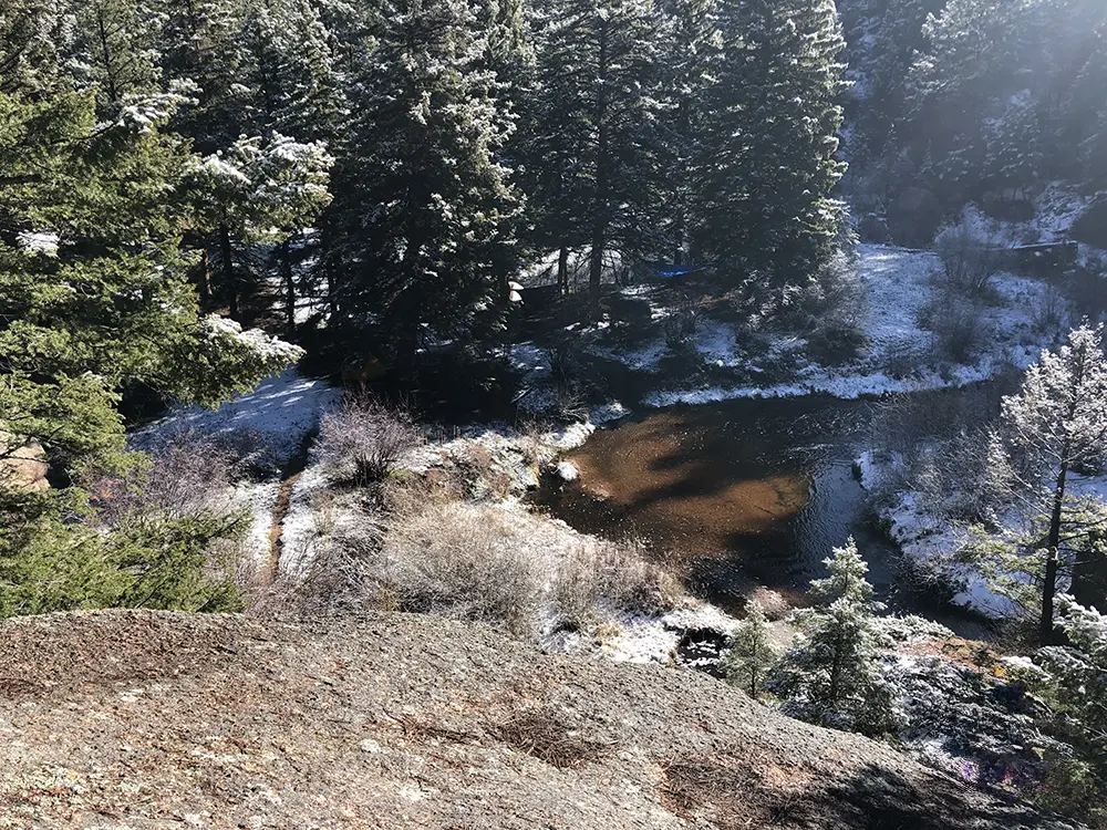 As you enter the forest from here in for several miles is lots of camping and fly fishing opportunities. For warmth of hands and ease of camera operation I am wear brown trout fishing gloves. Hiking clothes base layer is Hang Out Graphic Hoodie, with a build in face mask. Lost Creek Wilderness in one of my favorite hiking areas in Colorado.