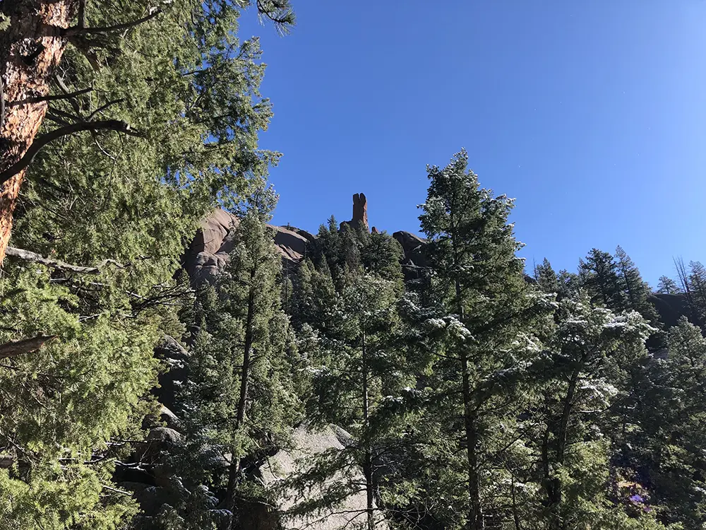- Making the turn for a Harmonica Arch Hike, in Lost Creek Wilderness.