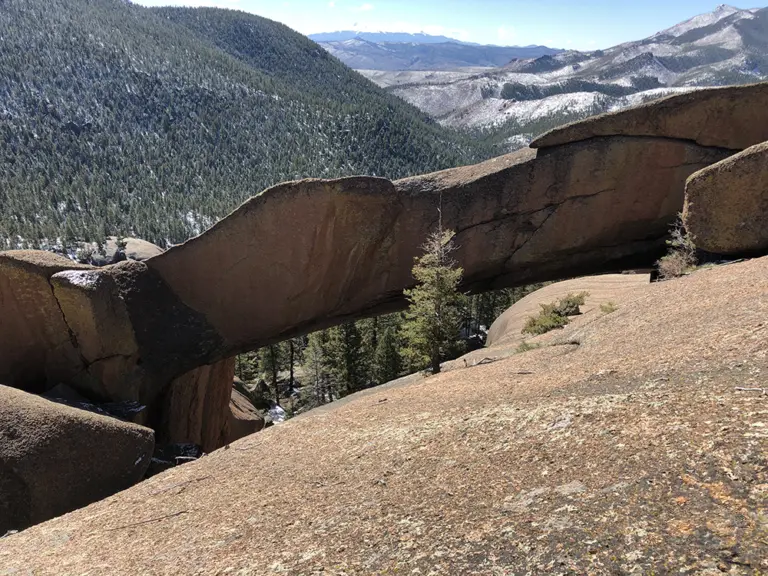 After the scramble, you emerge onto a giant rock outcropping. Curve right around boulders, descend a tilted slab (carefully—it’s like ice skating on stone black ice this morning, took a tumble). The granite dome has some of the best Lost Creek Views other than Buffalo Peak, and boom: Harmonica Arch. It’s massive, arching gracefully over the landscape like it’s showing off. Don’t climb it unless you’re part spider; the exposure is real.