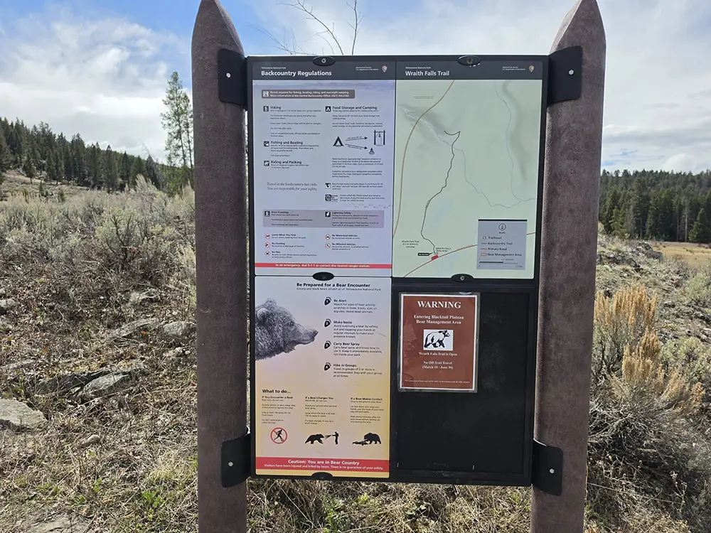 The Wraith Falls Trail is a glorious 0.9-mile round-trip out-and-back with barely 75-100 feet of elevation gain. Translation: even your out-of-shape uncle who complains about everything can handle this without needing a rescue helicopter. It winds through sagebrush meadows (watch for bison photobombing your selfies), some marshy bits that might squish underfoot after rain, and pleasant mixed conifer forest. No boardwalks anymore—they rerouted it to protect the wetland, so congratulations, you’re trailblazing responsibly.